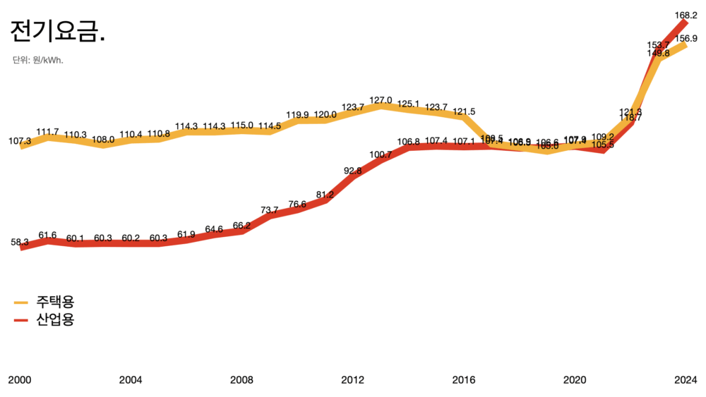 - 수입 에너지 가격, 특히 LNG 가격이 급등했기 때문입니다. 특히 2022년 러시아-우크라이나 전쟁으로 세계적으로 LNG 가격이 치솟았고 발전원가가 급증했습니다. 아직 회수하지 못한 비용을 전기요금에 반영해야 한다는 압력이 작용하고 있습니다.