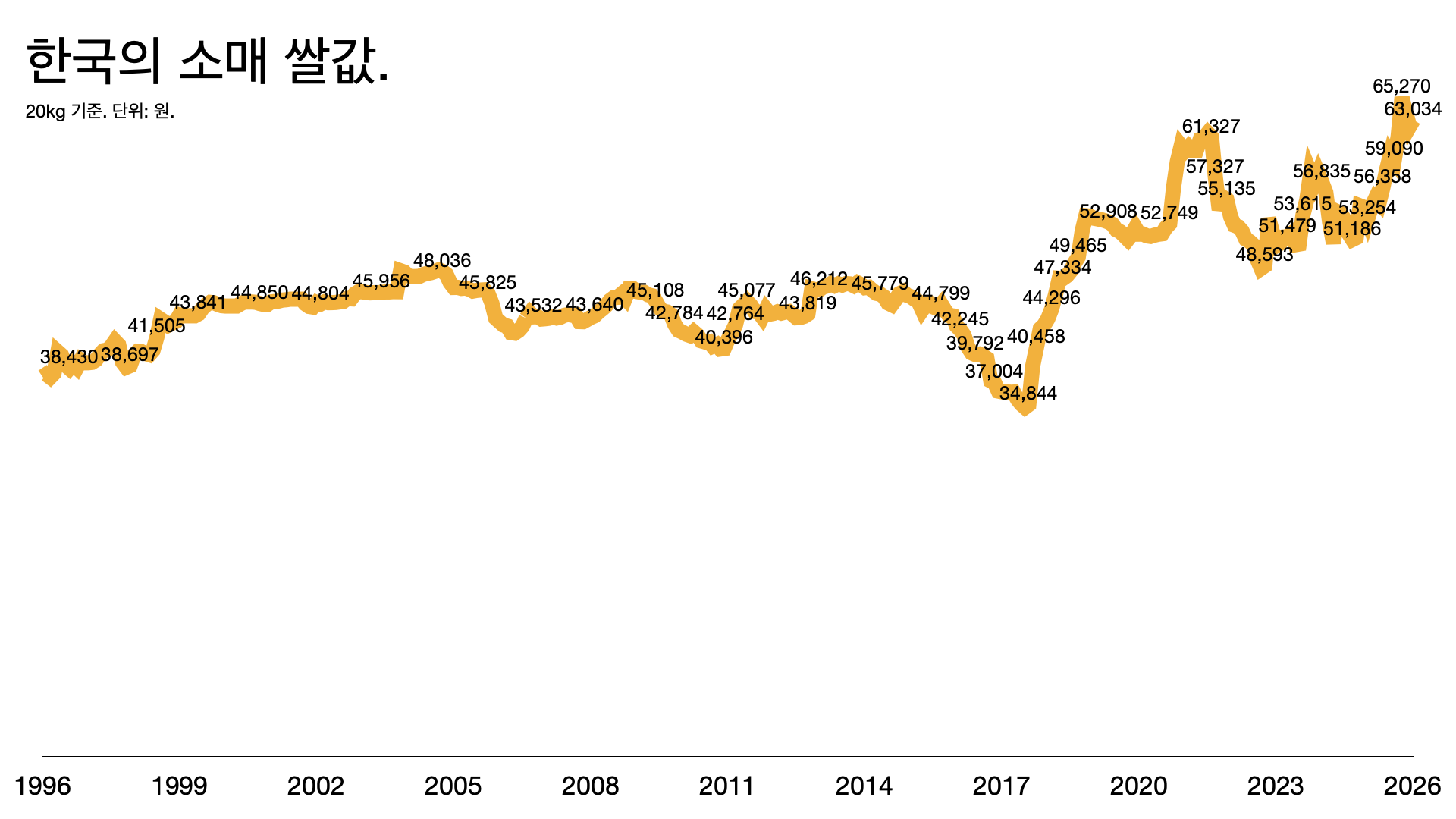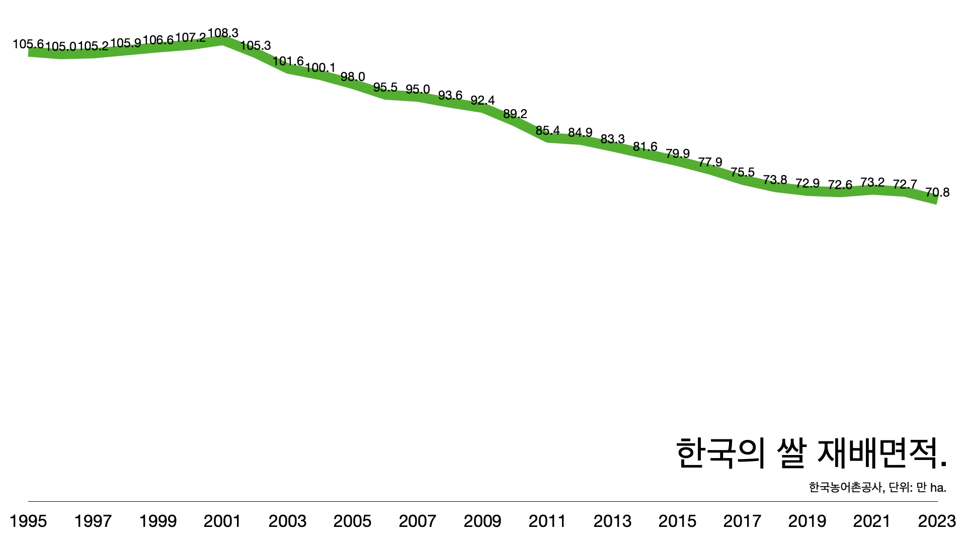 - 쌀값이 오른 건 재배 면적이 줄고 생산량이 줄었기 때문이다.