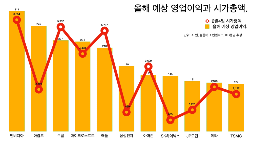 - 블룸버그 컨센서스 기준으로 올해와 내년 삼성전자의 영업이익은 170조 원과 191조 원이 될 거라는 분석이다. TSMC의 올해 예상 영업이익은 124조 원이다.