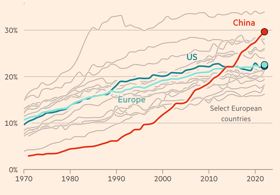 - 중국 GDP에서 청정 에너지 기술이 차지하는 비중이 10%가 넘는다. 성장률 기여도는 26%에 이른다.