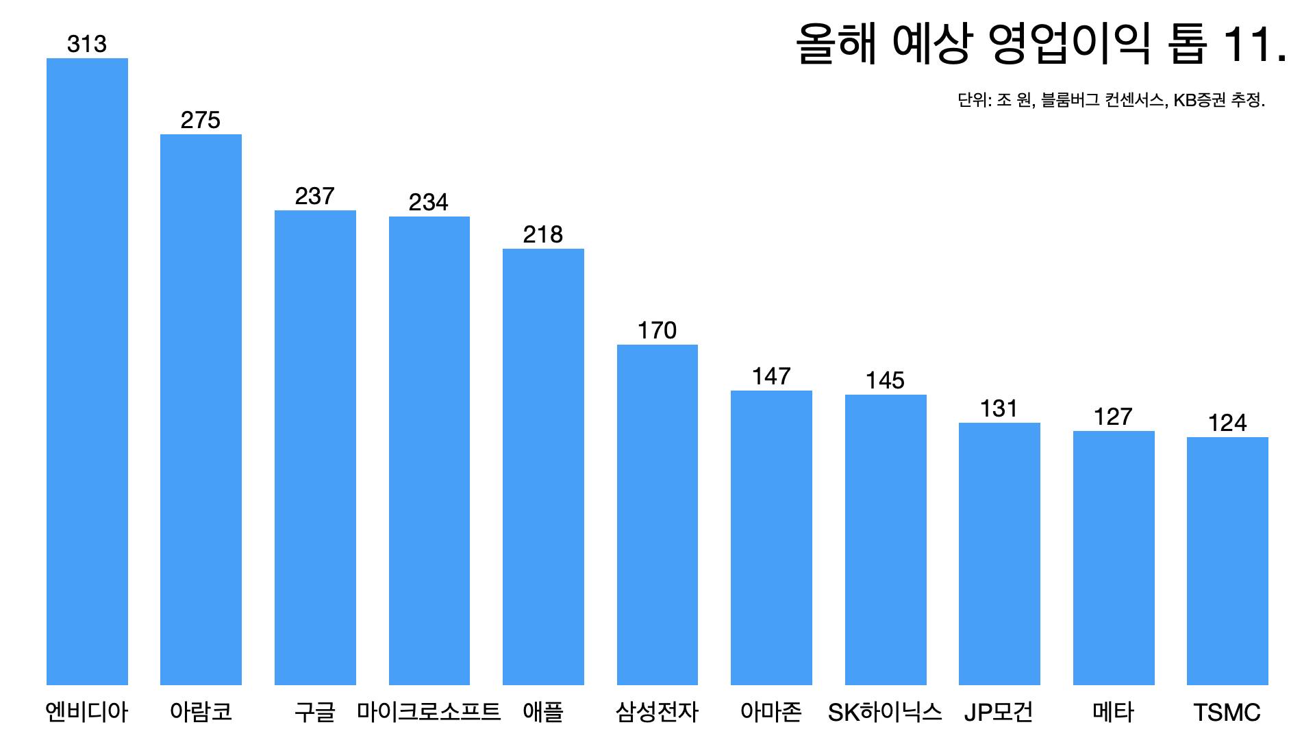 - 지난해 4분기 기준으로 하이닉스의 영업이익률이 58%다(TSMC보다 높다). 시가총액이 1년 동안 340%가 올랐다.
