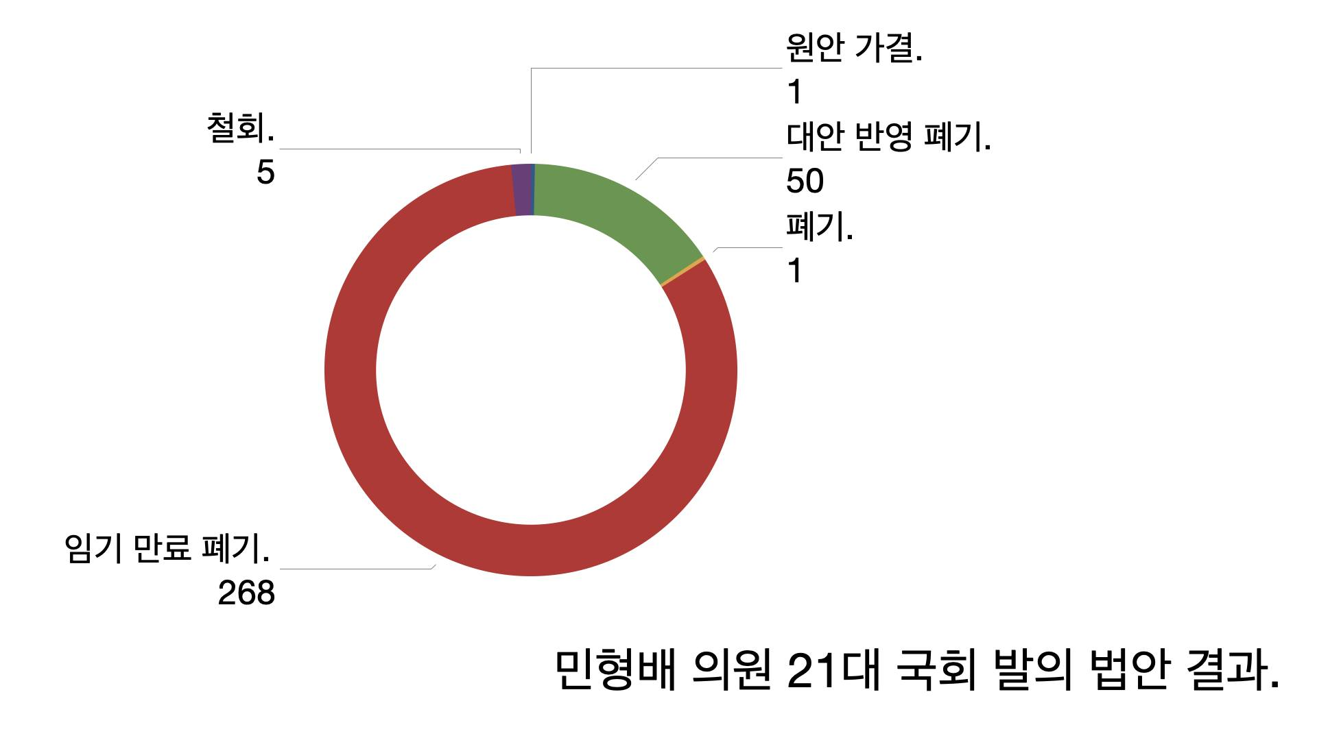 - 다섯 번째 질문: 왜 이런 일이 벌어지나. 법안 발의 건수가 의원들 실적이 되기 때문이다. 21대 국회에서 325건을 발의한 민형배(민주당 의원)는 정작 가결된 법안이 1건뿐이다. 나머지 324건은 모두 폐기됐다.