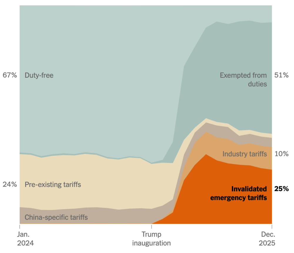 - 예일대 예산연구소에 따르면 지난해 말 기준으로 미국의 평균 관세 세율은 16.9%다. 대법원 판결 이후 관세는 9.1%로 떨어진다. 이 연구소는 트럼프의 플랜 B가 실행되면 다시 15.4%까지 오를 거라고 분석했다.