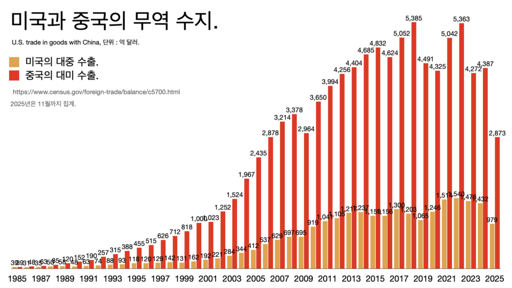 - 트럼프가 이례적이고 특별한 위협이라고 한 건 첫째, 펜타닐 등 불법 마약 유통과 둘째, 급격히 불어나는 무역 적자와 제조업 기반의 붕괴 때문이다.