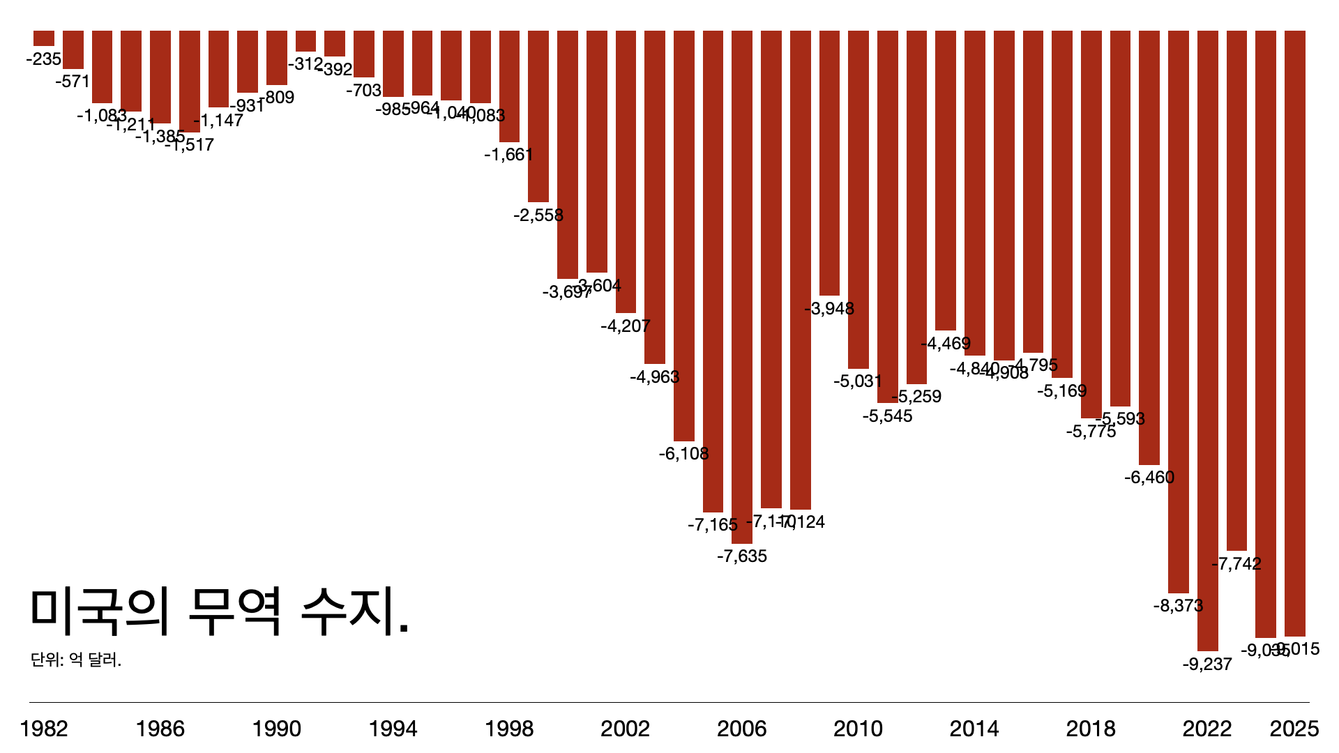 - 미국의 무역 적자는 여전히 크다. 관세 전쟁은 무역 적자를 해결하지 못했다.