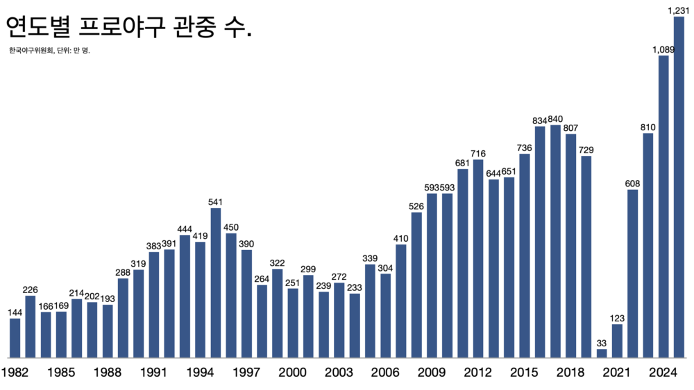 지난해 프로야구 관중은 1231만 명.