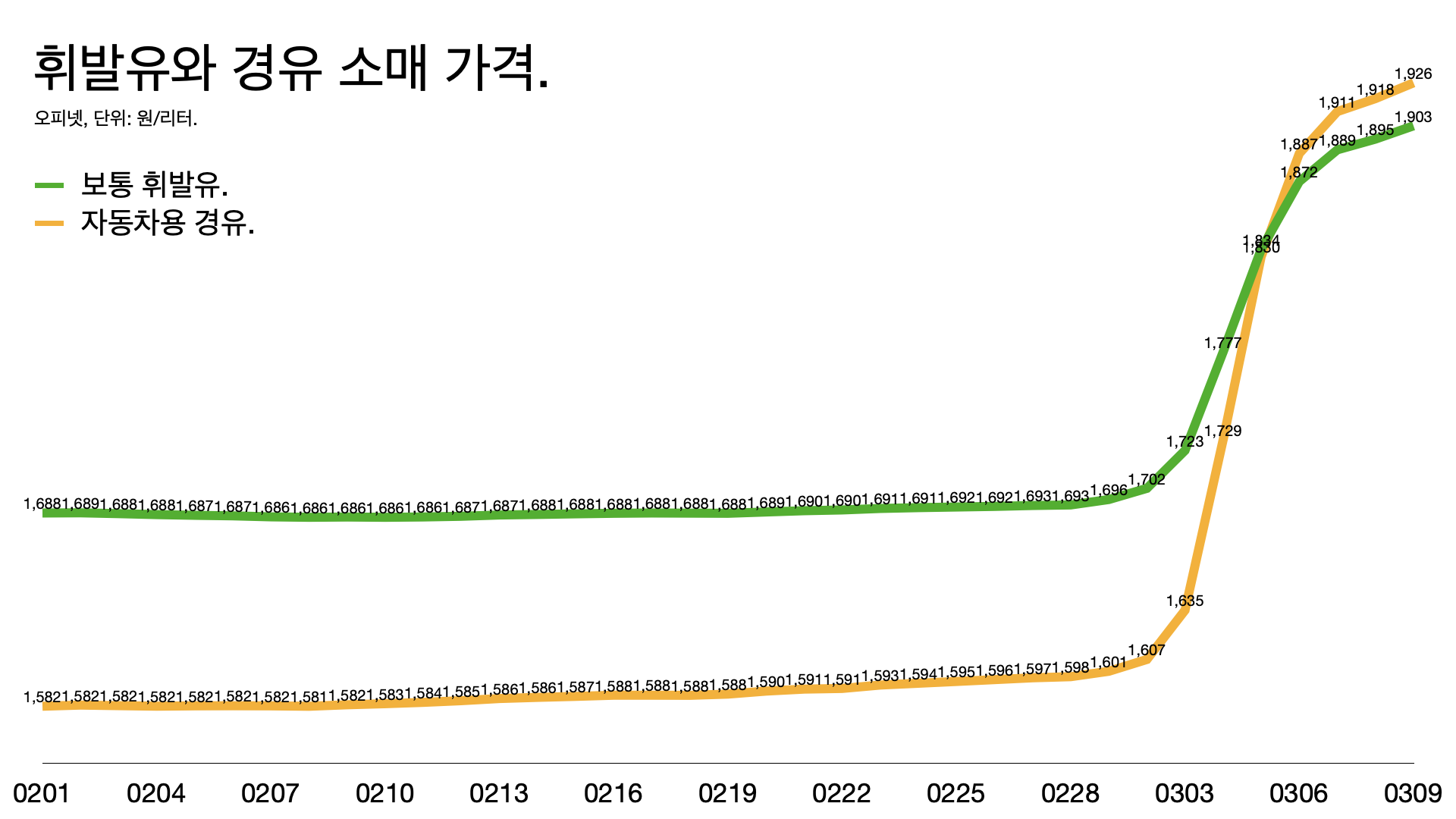 휘발유 1리터에 1900원.