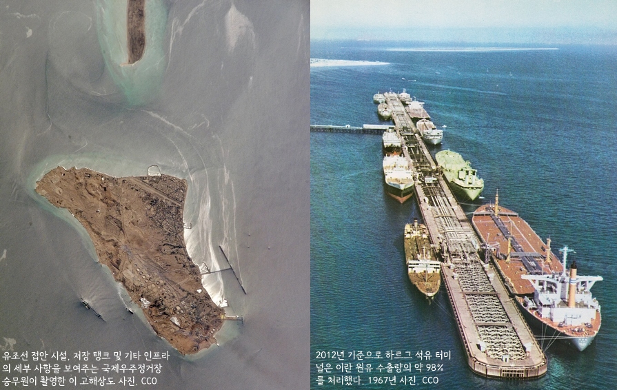 - 하르그(Kharg) 섬은 이란에서 가장 큰 석유 수출 터미널이 있는 곳이다. 면적은 25㎢, 울릉도의 3분의 1 크기다. 이란 원유 수출의 90%가 이 터미널을 지난다.