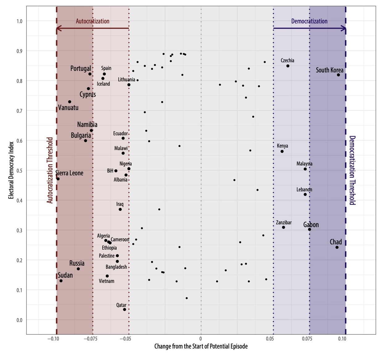 - 스웨덴 예테보리대 ‘민주주의 다양성 연구소’가 해마다 발표하는 지표다. 한국은 2년 만에 ‘선거민주주의’ 단계에서 ‘자유민주주의’ 단계로 올라섰다.