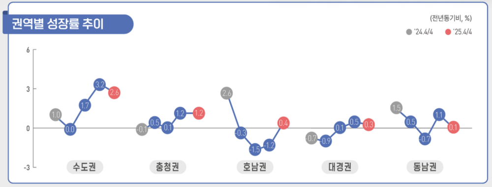 - 대구경북은 0.0%고 제주는 -2.0%다. 충청권은 0.7%다.