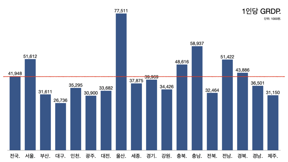 - 지난해 지역내총생산(GRDP) 통계가 나왔다. 전체 성장률은 1.0%다. 지역에서 새로 창출한 최종 생산물 가치의 합계다.