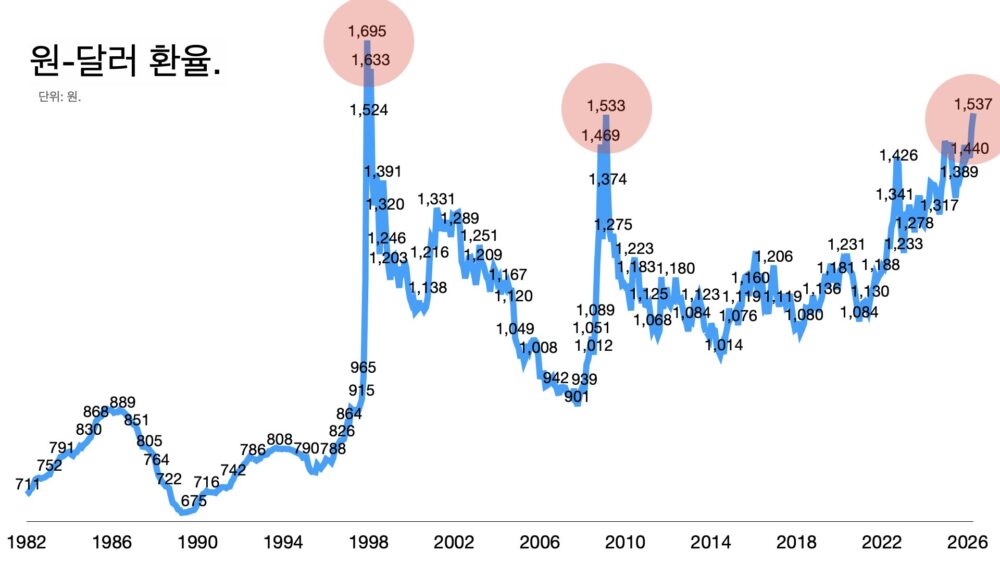 - 첫째, 국제 유가가 오르면서 달러화 가치가 따라 오르고 있다. 위험 자산을 회피하려는 현상이다.