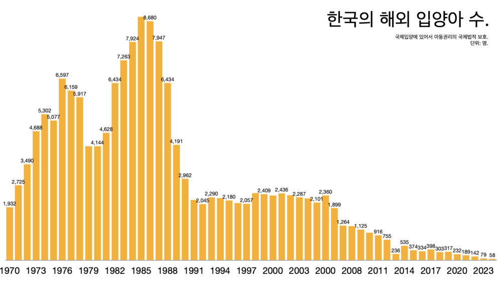 - 정부가 뒤늦게 지난해부터 해외 입양을 국가가 직접 심사하고 관리하기로 했다. 일단 2029년까지 해외 입양을 전명 중단하기로 했다.