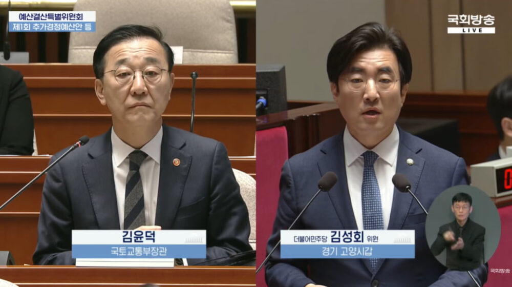- 김성회는 김윤덕(국토부장관)에게 “장관이 지시를 해도, 심지어 대통령이 (휴게소 운영사에) 문제가 있다고 살펴보라 해도 도로공사와 국토부에서는 ‘별 문제가 없다’는 보고가 올라온다”며 공무원들의 복지부동을 질타했다.