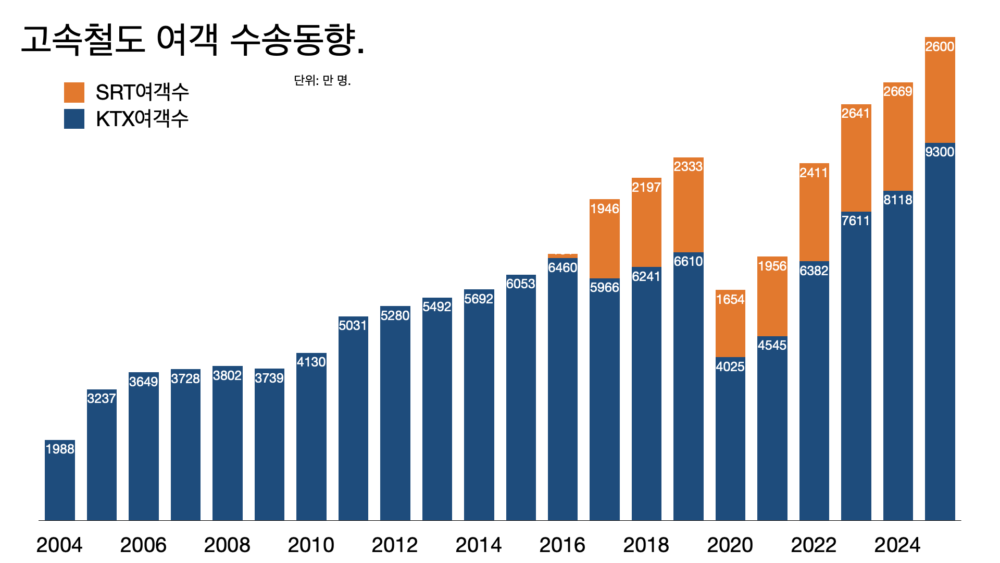 - 철도 요금은 2011년 이후 15년 이상 동결 상태다. KTX와 SRT가 통합되더라도 여전히 좌석은 부족하다. GTX가 연결되고 인천발과 수원발 KTX가 도입되면 더 부족하게 된다.