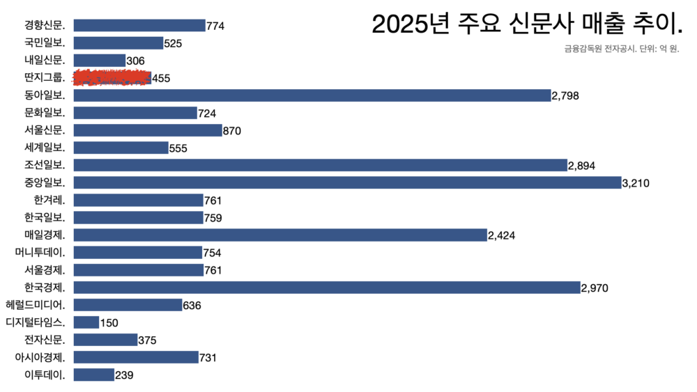 - 경향신문과 한겨레가 각각 774억 원과 761억 원이니 웬만한 일간신문에 맞먹는 수준이다. 세계일보와 국민일보가 각각 555억 원과 525억 원이다.